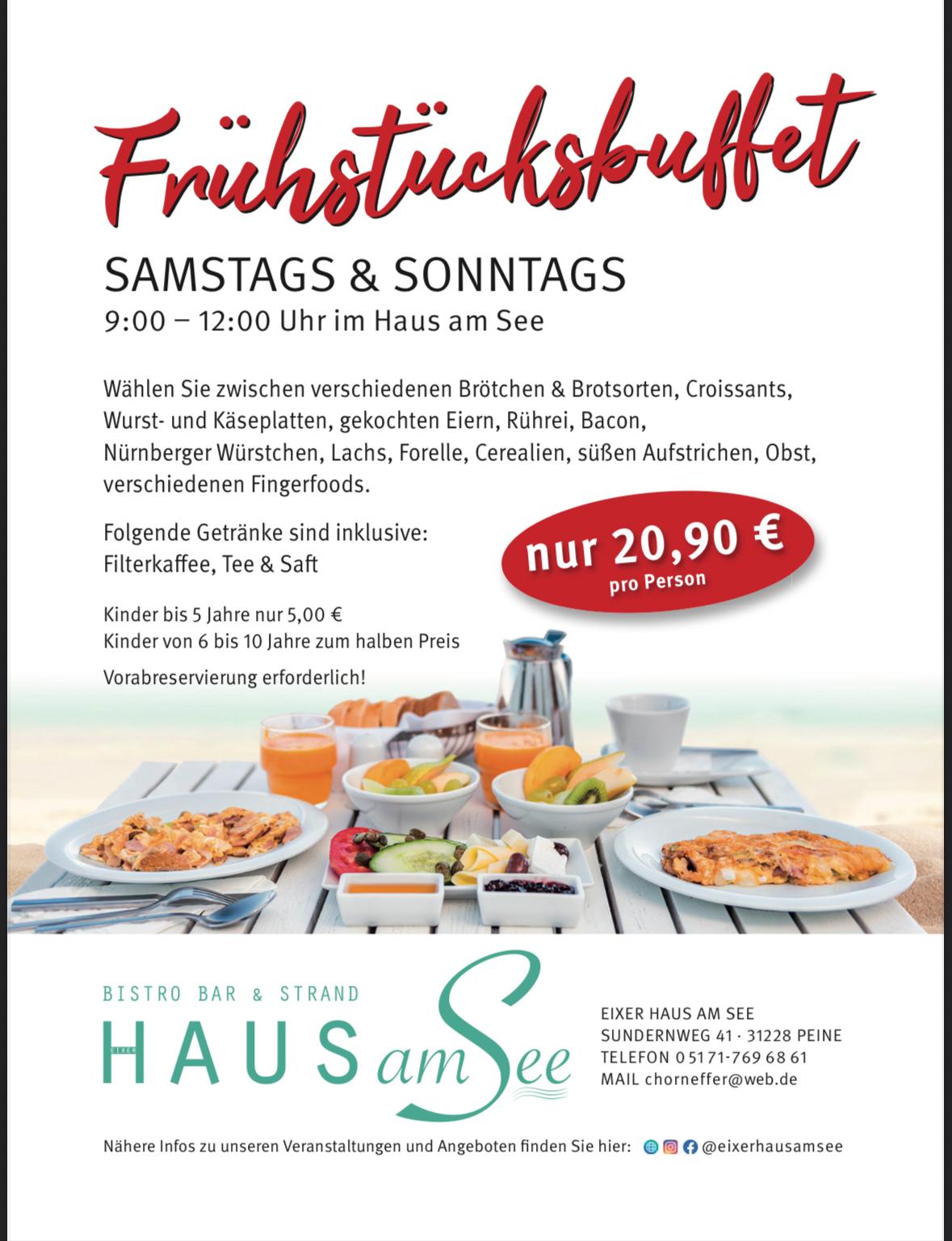 Samstags und Sonntags 9-12 Uhr Frühstücksbuffet für 20,90€ p.P.